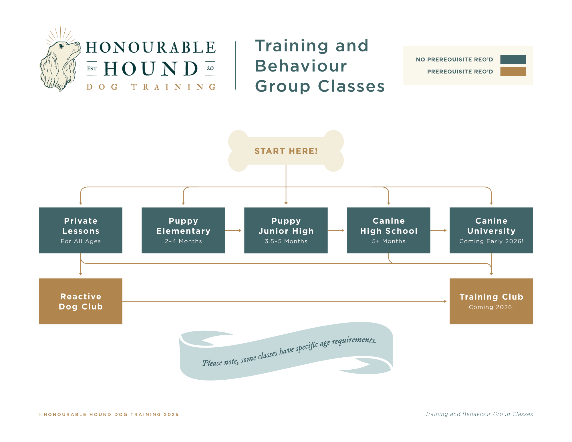 Puppy Elementary School is all about learning how to safely & properly socialize your puppy to other puppies, people, and all manner of things that dogs tend to find scary or overly exciting. We’ll also focus on problem prevention and a little foundation obedience behaviours like recall & leash manners. It’s also great for taking cute pictures and videos you can post to your Instagram ;)